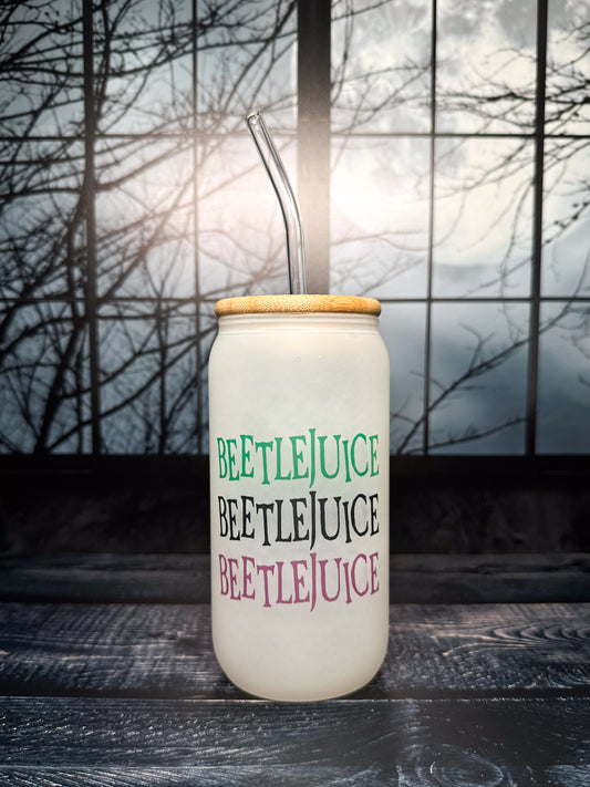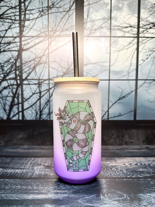 Beetlejuice Stained Glass, frosted glass tumbler, 16oz