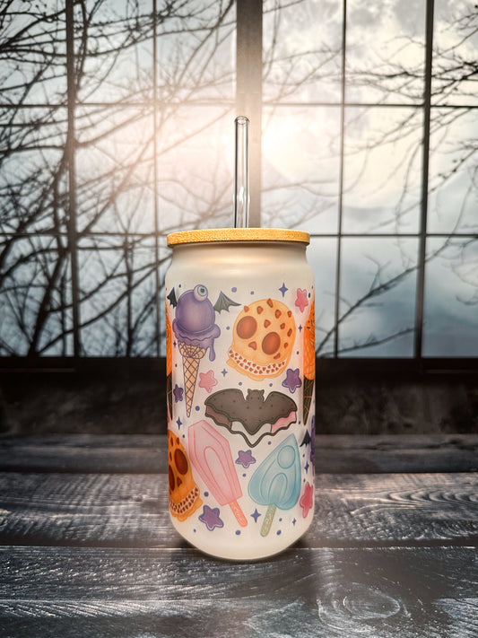 Ice Scream glass tumbler with lid and straw